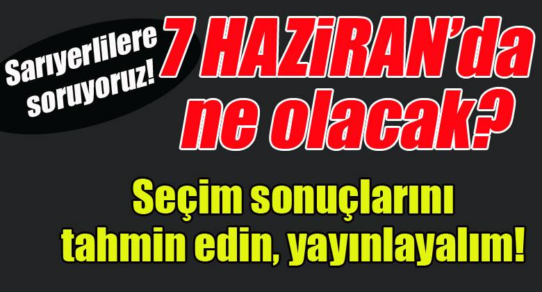 Bu Pazar günü Türkiye genel seçimlere gidiyor. Seçim öncesi her kafadan bir ses çıkıyor ve önüne gelen işine geldiği gibi anket yayınlıyor. Oysa halkın nabzını en güzel yine halk tutar. O zaman biz de Sarıyer’in 10 yıllık en köklü gazetesi olarak sizlere soruyoruz! Bu seçimde sizce hangi parti ne kadar oy alır? Tahminlerinizi bu haberin hemen aşağısında bulunan HABERE YORUM YAZ bölümüne yazarak yapabilirsiniz. Ya da Genel Yayın Yönetmenimiz Bekir Batu’nun bekirbatu@gmail.com adresine mail de atabilirsiniz. Yapacağınız tüm yorumları sitemizde yayınlayacağız. Seçimi en doğru tahmin edecek okuyucumuzu seçimden hemen sonra sizlere ilan edeceğiz ve bu sonuçları nasıl doğru tahmin ettiğini kendisiyle yapacağımız özel bir röportajla sizlerle de paylaşacağız.