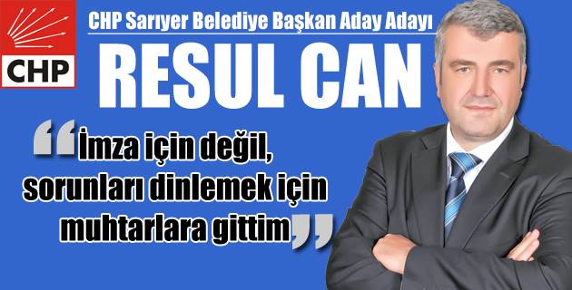 CHP Sarıyer Belediye Başkan Aday Adayı Resul Can, gazetemizde yayınlanan “Rezalete bak” başlıklı haberle ilgili açıklama yaptı. Can, “Resul Can elinde kağıt kalem alarak muhtarlık muhtarlık dolaşarak zorla imza toplamaya yeltendi” ifadelerinin doğru olmadığını vurguladı. CHP Sarıyer Belediye Başkan Aday Adayı Resul Can gazetemize açıklama göndererek muhtarlıkları dolaşarak imza topladığı yönündeki bilgilerin gerçeği yansıtmadığını söyledi. […]